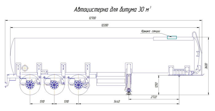 длина 12 700 мм, ширина 2 500 мм, высота 3 600