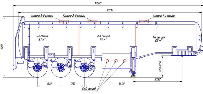 | Габариты | длина 10 500 мм, ширина 2 500 мм, высота 3 450 мм (указана высота для ССУ 1250 мм) | |