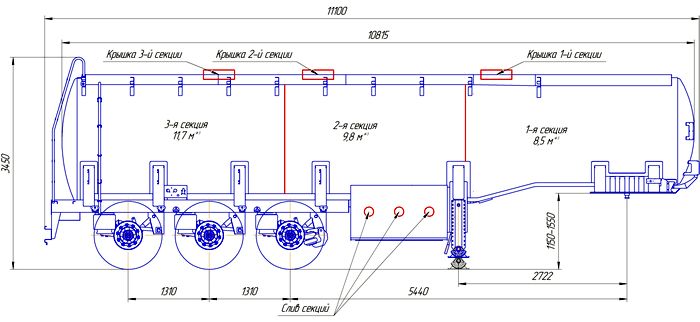 | Габариты | длина 11 100 мм, ширина 2 500 мм, высота 3 450 мм(указана высота для ССУ 1250 мм) | |