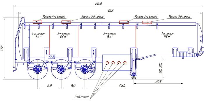 длина 10 600 мм, ширина 2 500 мм, высота 3 750