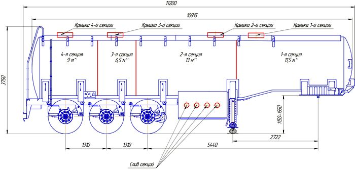 длина 11 200 мм, ширина 2 500 мм, высота 3 750